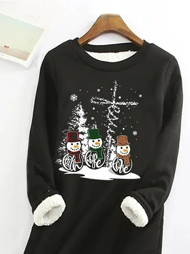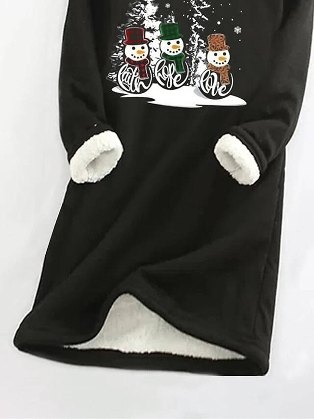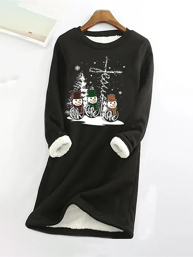 Women’s Christmas Dress Sweatshirt Dress Mini Dress Warm Fashion Outdoor Christmas Holiday Crew Neck Print Snowman Christmas Tree Loose Fit Black S M L XL XXL