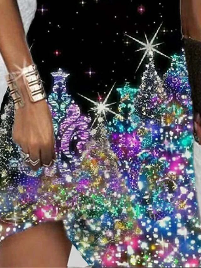 Women‘s Christmas Hoodie Dress Shift Dress Mini Dress Black Long Sleeve Tree Print Winter Fall Spring Hooded Fashion Daily Date 2022 S M L XL XXL 3XL