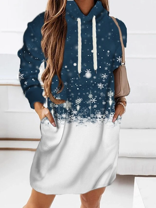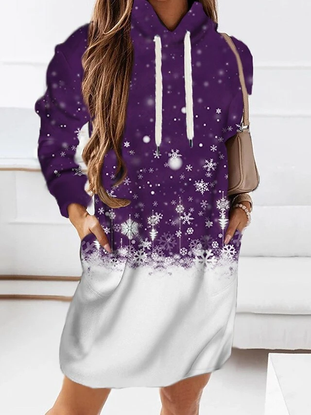 Women’s Christmas Hoodie Dress Shift Dress Mini Dress Green Blue Purple Long Sleeve Snowflake Print Winter Fall Autumn Hooded Fashion Daily Date 2022 S M L XL XXL 3XL