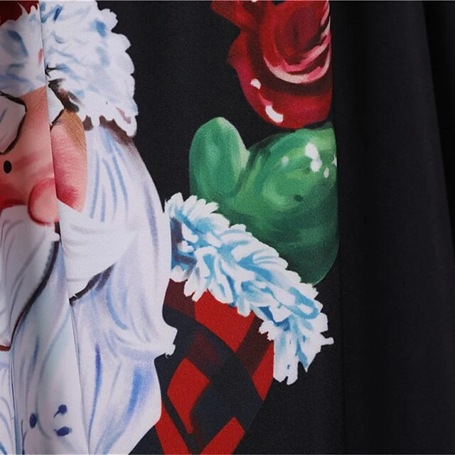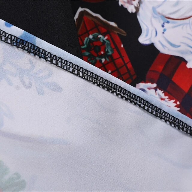 Women’s Christmas Knee Length Dress Gray White Black Red Brown Long Sleeve Print Bow Print Fall Winter V Neck Casual Vintage2021 S M L XL XXL 3XL