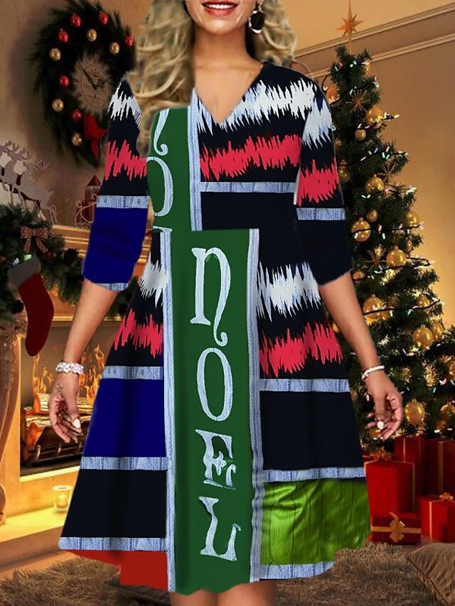 Women’s Christmas Print Dress Green Red Light Blue Gray Long Sleeve Elk SnowmanTree Print Winter Autumn V Neck Fashion CasualFall Dress Loose Fit 2022 S M L XL 2XL 3XL 4XL 5XL 6XL
