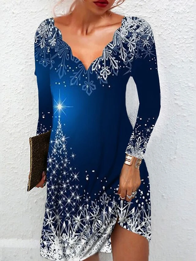 Women’s Christmas Sequin Dress Formal DressShort Mini Dress Black Long Sleeve Tree Print Sequins Ruched Print Fall Winter V Neck Stylish Modern 2022 S M L XL XXL 3XL