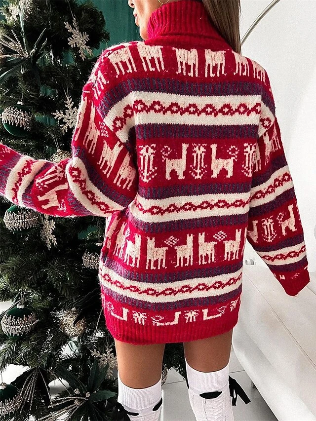 Women‘s Christmas Sweater Dress Jumper Dress Winter Dress Fashion Ugly Christmas Christmas Daily Vacation Going Out Turtleneck Long Sleeve Patchwork 2023 Loose Fit Red Gray S M L XL