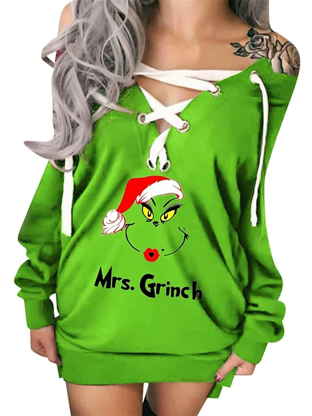 Women‘s Christmas Sweatshirt Dress Bodycon Sheath Dress Mini Dress Black Yellow Red Long Sleeve Letter Print Fall Winter Autumn Off Shoulder Fashion Vacation Loose Fit 2023 S M L XL 2XL 3XL 4XL 5XL
