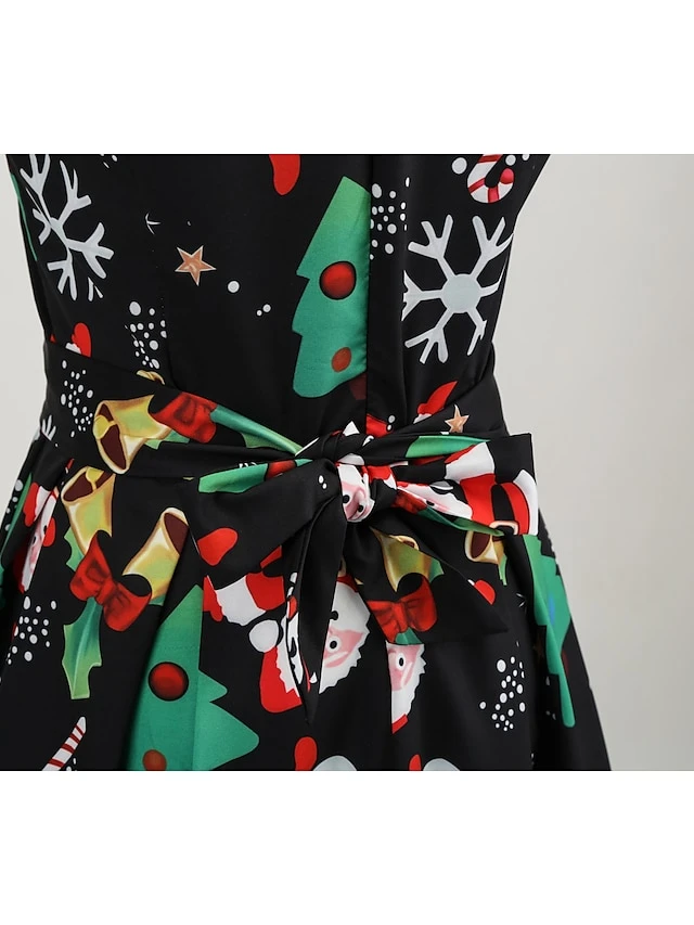 Women’s Christmas Swing Dress Knee Length Dress Black SleevelessSnowman Candy Zipper Bow Print Fall Spring Round Neck VintageParty 2021 S M L XL XXL XXXL
