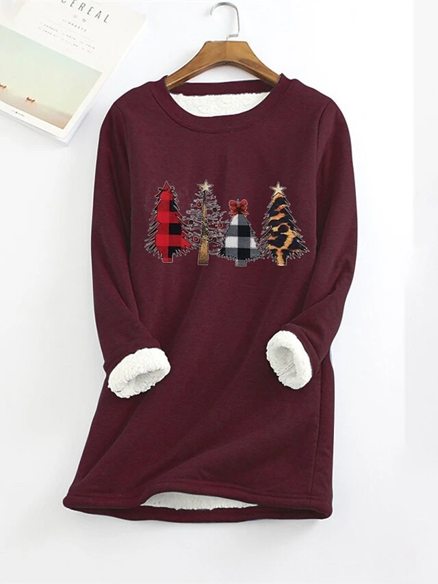 Women‘s Plus Size Christmas Casual Dress Tree Crew Neck Long Sleeve Winter Fall Casual Mini Dress Daily Dress / Hoodie Dress